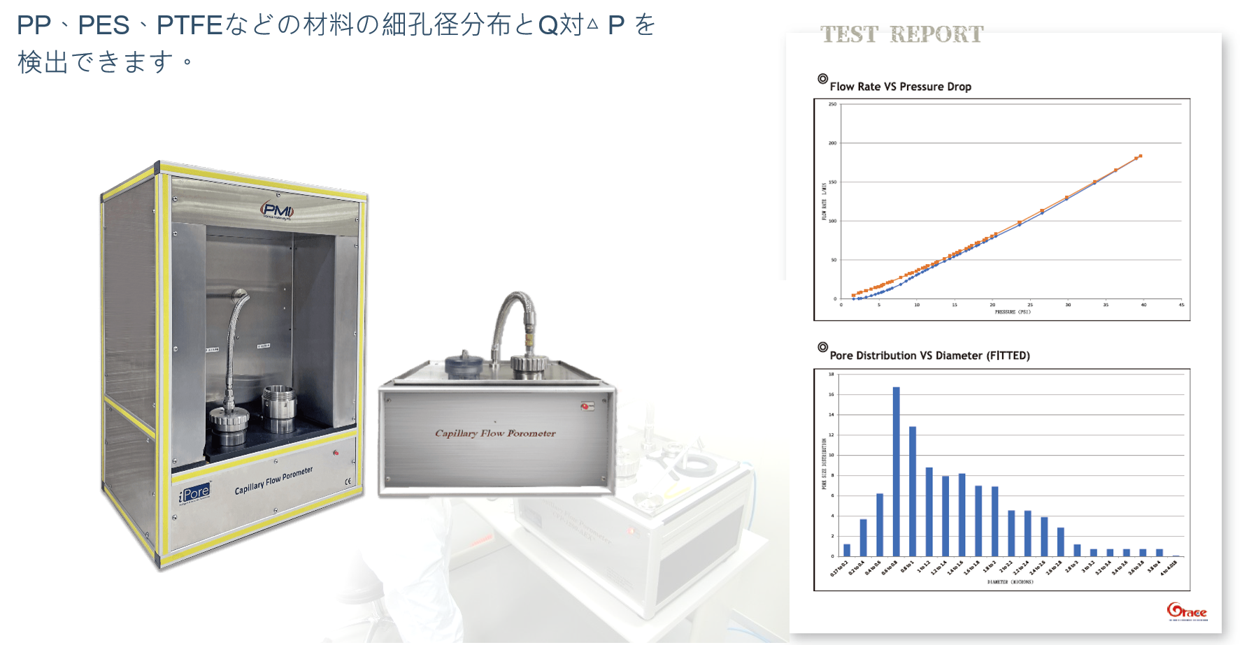 ろ材孔径分布及び流量vs差圧試験