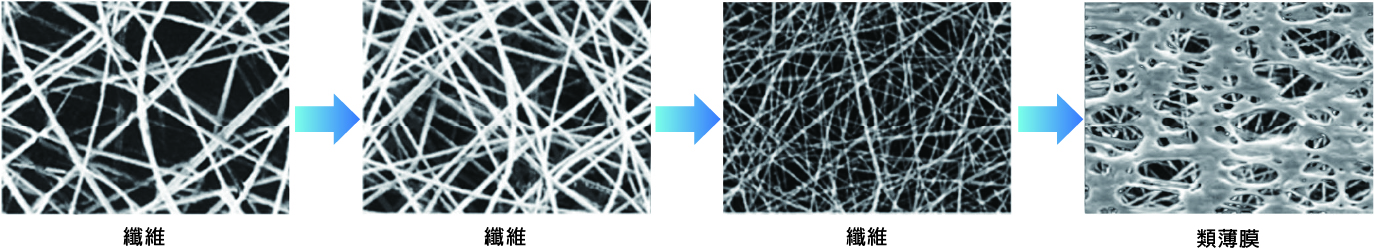 流出面使用類薄膜濾材,纖維穩定熔合,避免攔截物產生架橋現象後,纖維位移影響過濾效率。