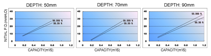 | 570 | 570 | 50/70/90 | 7.6/7.6/9.1 CMM | D 50mm:10.0mm H2O D 70mm:8.0mm H2O D 90mm:8.0mm H2O *Face Velocity:0.55m/sec |